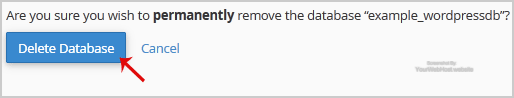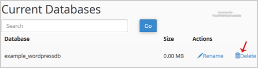 3. Under "Current Databases" you can see a list of all your databases. Locate the Database you wish to remove and then click on the "Delete" icon.