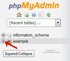 3. In left side-bar, Click on the expand button to expand database like "example".