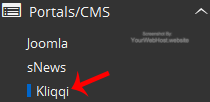 4. On the left side of your screen you should locate the "Portal/CMS" category. Click on it and then click on the "Kliqqi" link that will appear.