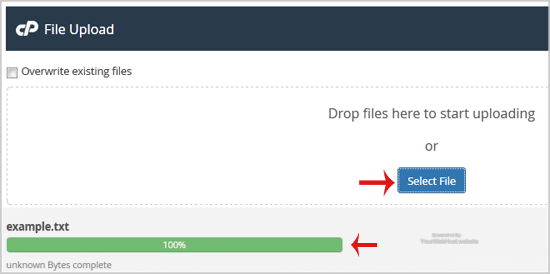 6. Click on the "Select File" button and select the file you want to upload from your PC. After you have select the file, the upload process will begin automatically.