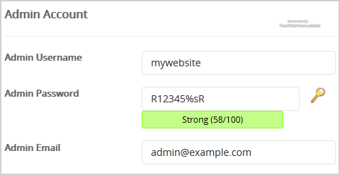 • Admin Email: Your e-mail address. (Useful for administrator account password reset, notification, etc)