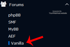 5. On the left side of your screen you should locate the "Forums" category. Click on it and then click on the "Vanilla" link that will appear.