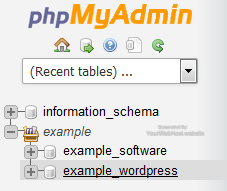 3. In left side-bar, Click on the expand button to expand database like "example".
