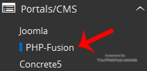 4. On the left side of your screen you should locate the "Portal/CMS" category. Click on it and then click on the "PHP-Fusion" link that will appear.
