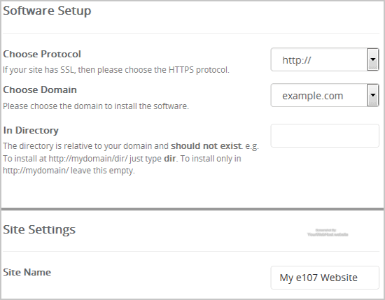 • Site Name: Enter the name of your website, such as "e107".