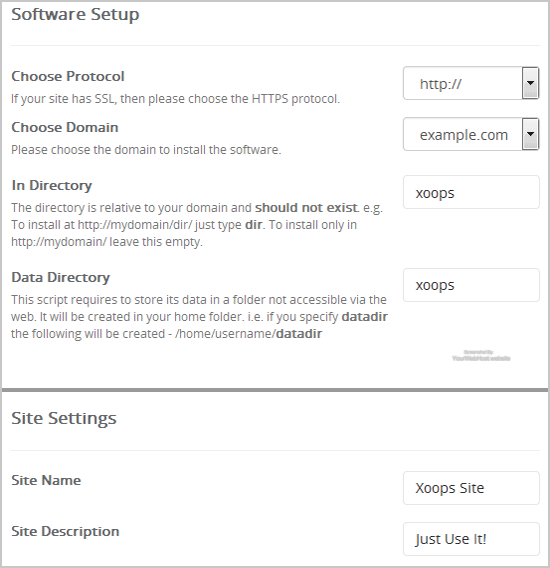 • In Directory: If you want to install this in a directory, for example example.com/directory, enter the directory name. Otherwise, leave this blank to install in your main domain example.com
