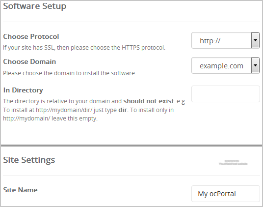 • Site Name: Enter the name of your website, such as "ocPortal".