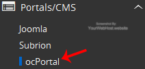 4. On the left side of your screen you should locate the "Portal/CMS" category. Click on it and then click on the "ocPortal" link that will appear.