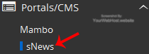4. On the left side of your screen you should locate the "Portal/CMS" category. Click on it and then click on the "sNews" link that will appear.