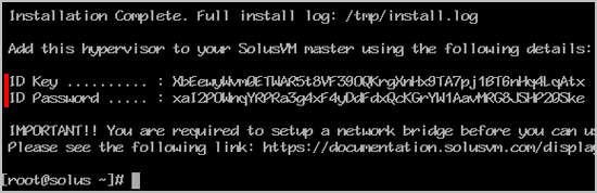 Once it completes, it will show you the Slave keys and further instructions for your virtualization type. Now you can use these keys to add a node in your SolusVM Master panel. You will need a SolusVM Slave license for each node.